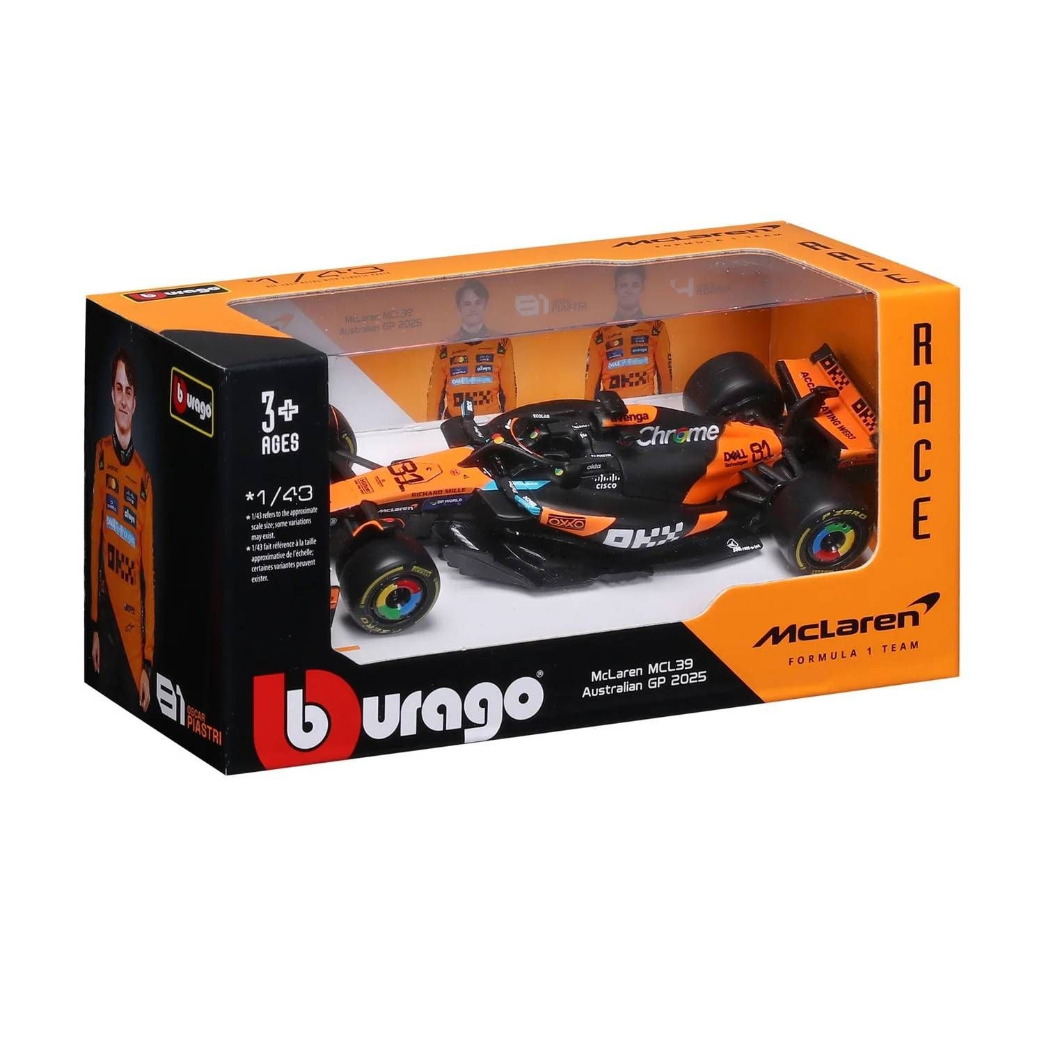 18-38248 Mô hình xe Bburago 1:43 F1 Mclaren Team MCL39 (cam)