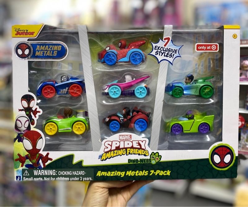 🕷️🦖 Marvel Spidey Amazing Metals Dino-Webs 7-Pack – Bộ xe siêu anh hùng khủng long