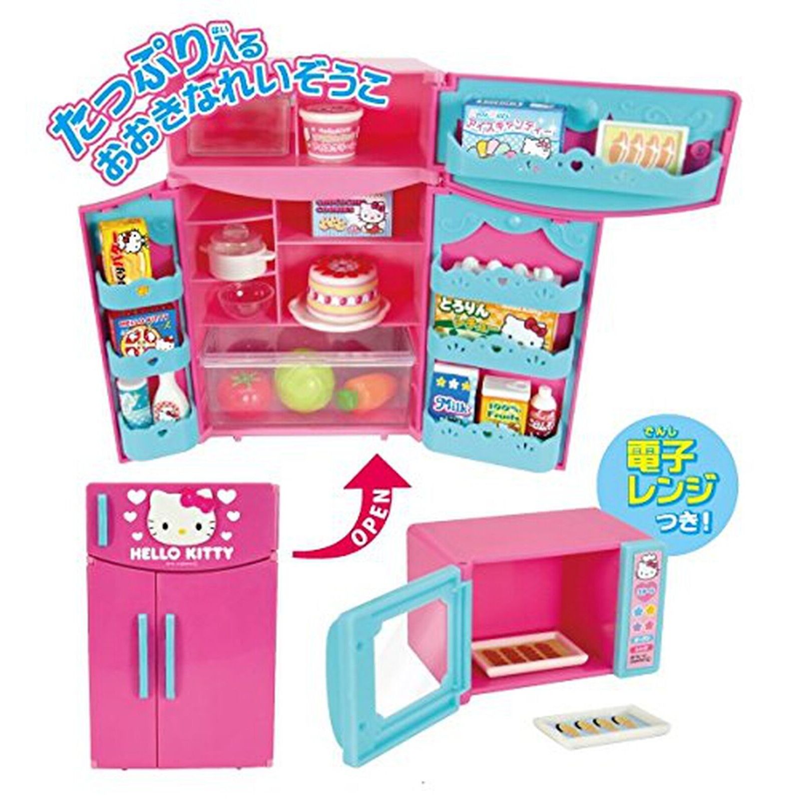 Bộ Đồ Chơi Nhà Bếp của Hello Kitty là sản phẩm thích hợp dành cho các bé gái trên 3 tuổi. Trong bộ đồ chơi này có rất nhiều dụng cụ làm bếp như lò vi sóng, tủ lạnh, lò nướng, nồi chảo, máy xay… Phía bên trong tủ lạnh và giỏ đựng đồ còn chứa rất nhiều đồ ăn, thức uống đặc sắc nữa. Với Bộ Đồ Chơi Nhà Bếp của Hello Kitty này, bé có thể chơi đồ hàng cùng với bạn bè, chuẩn bị nhiều món ăn đặc sắc, và học được cách sử dụng các vật dụng trong nhà bếp. Sản phẩm sẽ kích thích trí tưởng tượng sáng tạo của bé, giúp bé rèn luyện được sự khéo léo, nhanh nhẹn và tăng cường khả năng vận động.