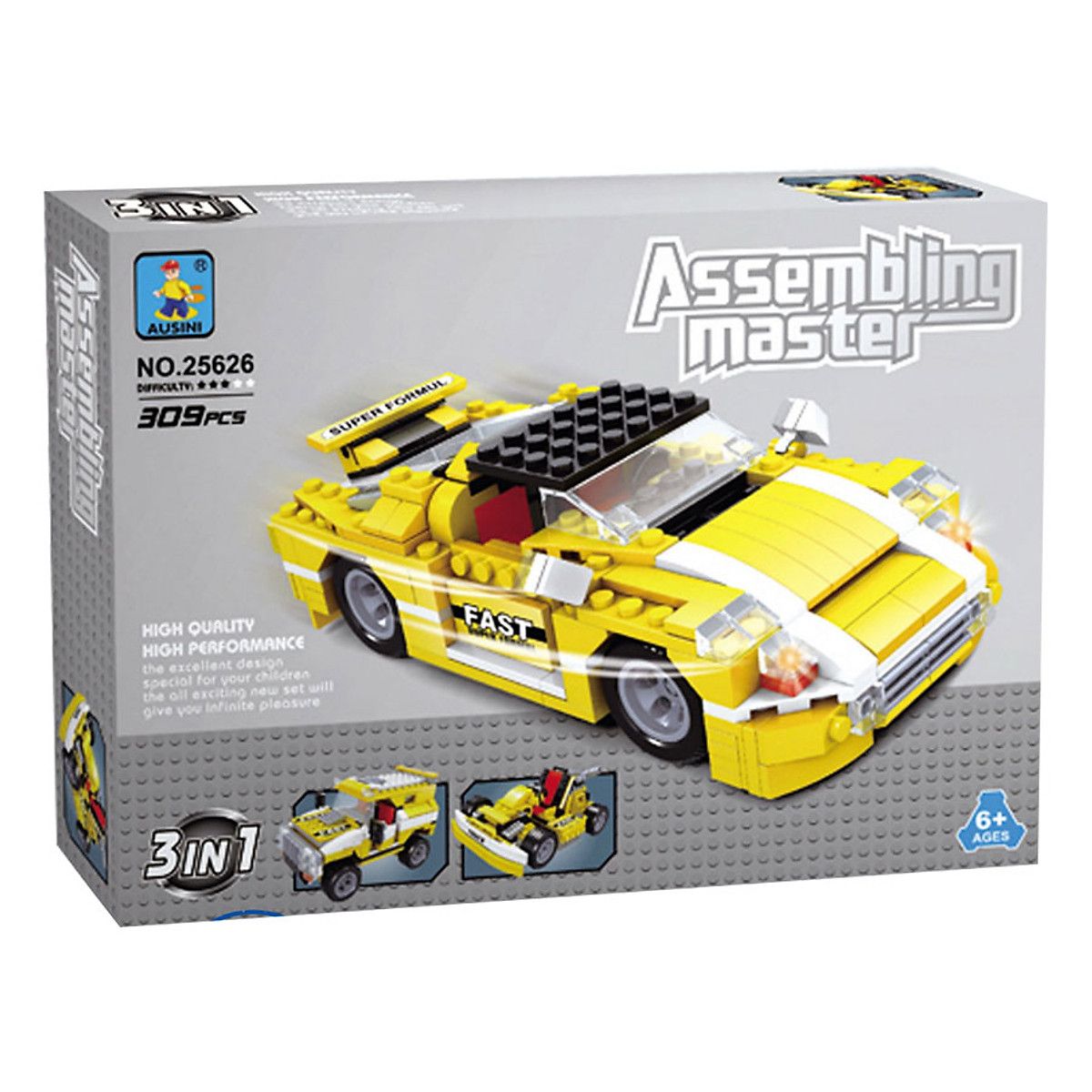 - Bộ Lắp Ráp Bậc Thầy Lắp Ghép (3 Trong 1) Ausini 25626 (309 Mảnh Ghép) là bộ lắp rắp có thể xếp thành 3 mô hình khác nhau chỉ trong 1 bộ. Bé sẽ được trải nghiệm và thử thách tính sáng tạo và khả năng lắp ghép của mình. Sản phẩm sẽ mang lại cho bé những phút vui chơi thú vị và khơi gợi khả năng tư duy và sáng tạo ở từng bé.