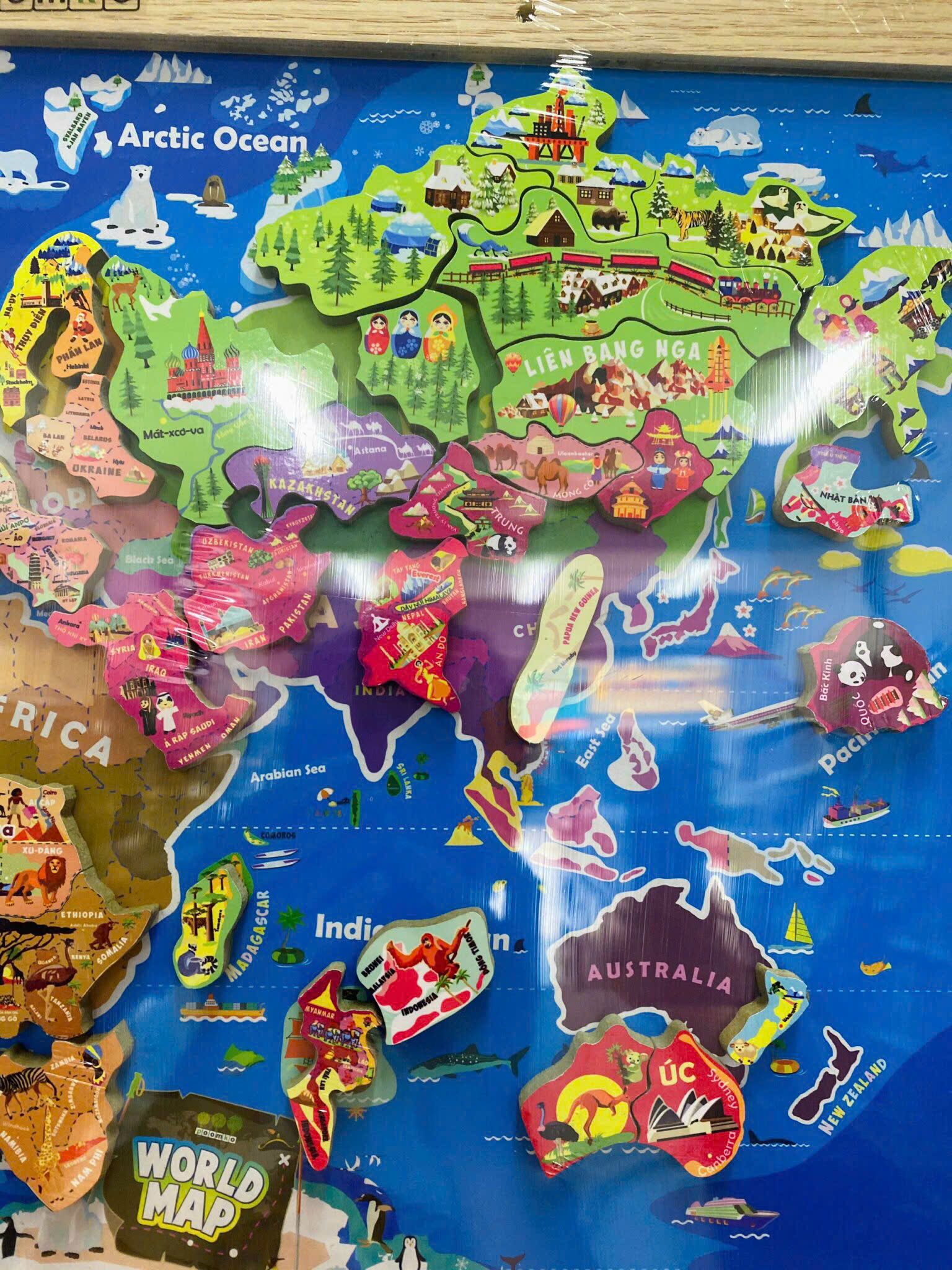 Bản Đồ Thế Giới A3 Bằng Gỗ Nam Châm – Đồ Chơi Giáo Dục Thông Minh