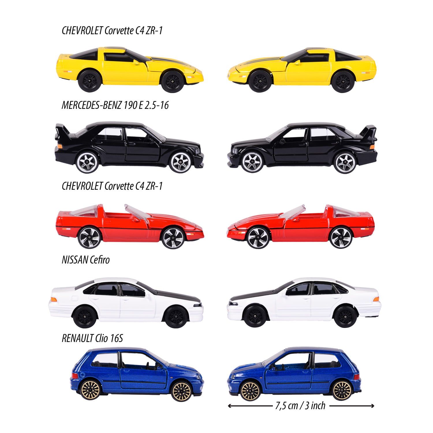 - Kích thước mỗi xe: 7.5 x 3 x 2.5 cm