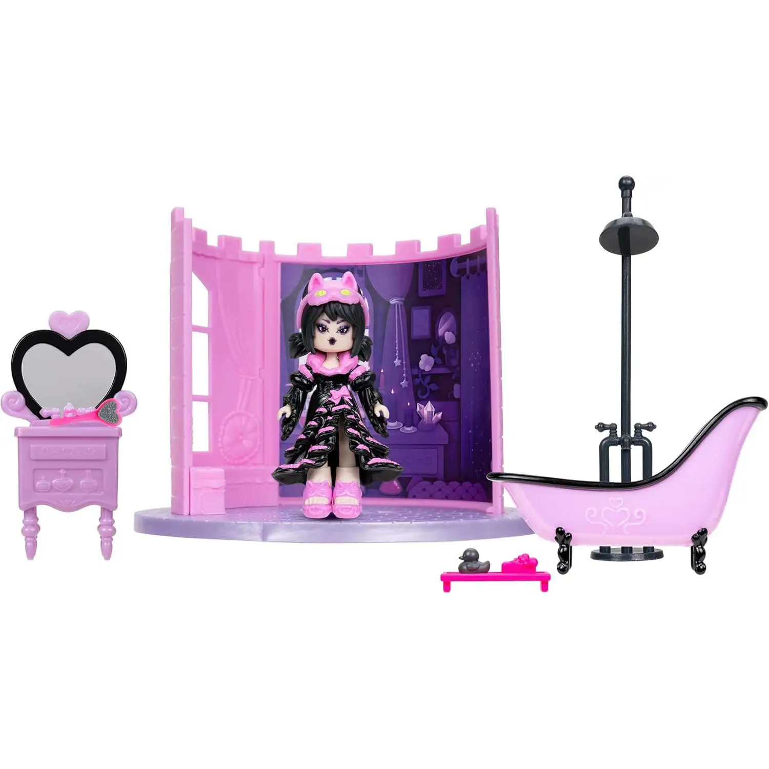 Khám phá thế giới phép thuật lộng lẫy của Royale High và thỏa sức thể hiện cá tính thời trang với Powder Room Playset – bộ phòng tắm hoàng gia lấy cảm hứng trực tiếp từ tựa game đình đám. Đây là không gian hoàn hảo để các nàng búp bê thư giãn, chăm sóc bản thân và tỏa sáng dưới ánh trăng huyền ảo.