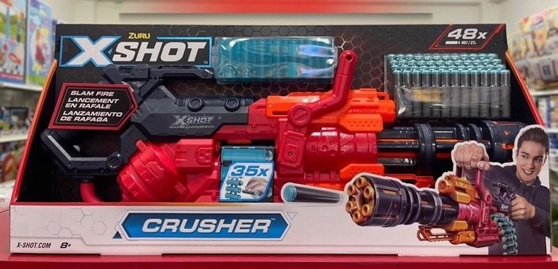 X-Shot Excel Crusher được khoác lên một lớp áo màu đỏ tươi đại diện cho sức mạnh, sự dũng cảm, sẵn sàng chiến đấu bên cạnh người chơi mọi lúc mọi nơi. Phần nòng xoay có 6 lỗ được sơn màu cam, mỗi lần một viên đạn bay ra sẽ tự xoay nòng.