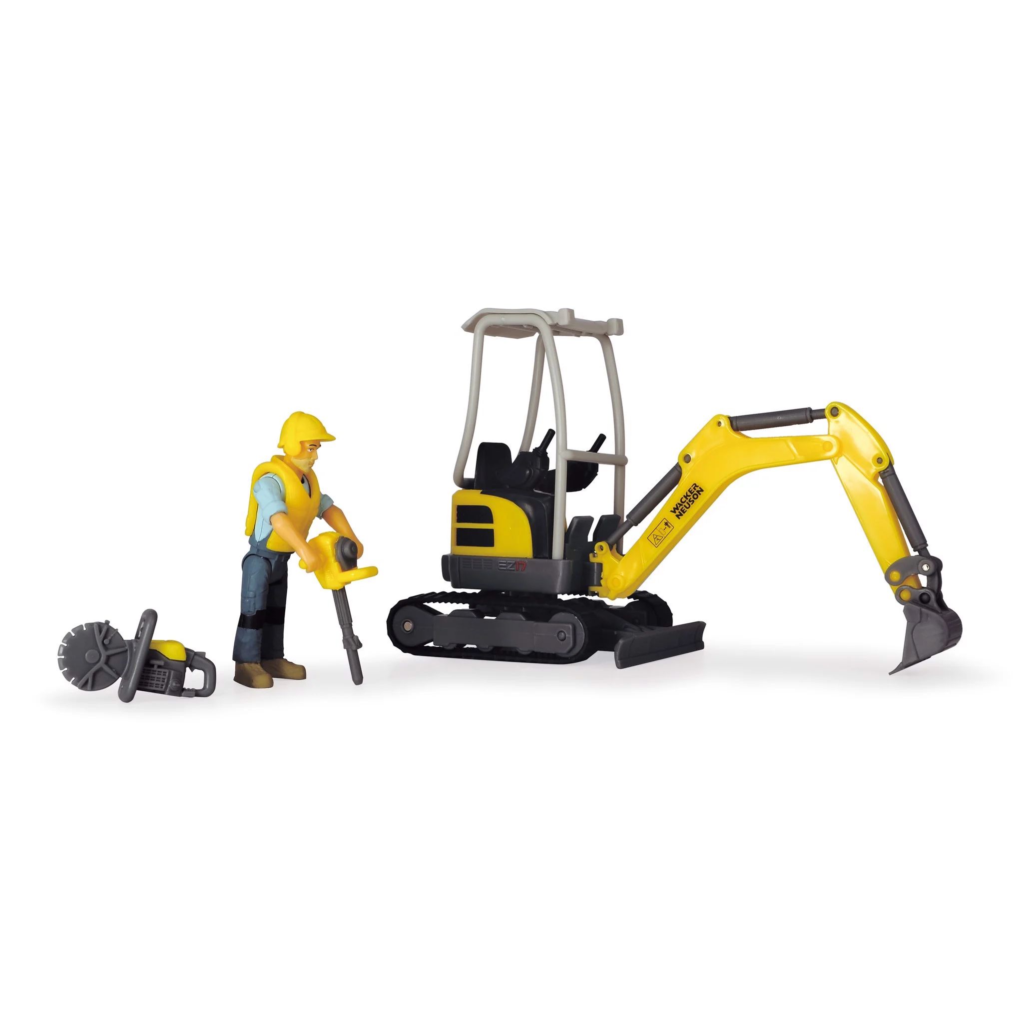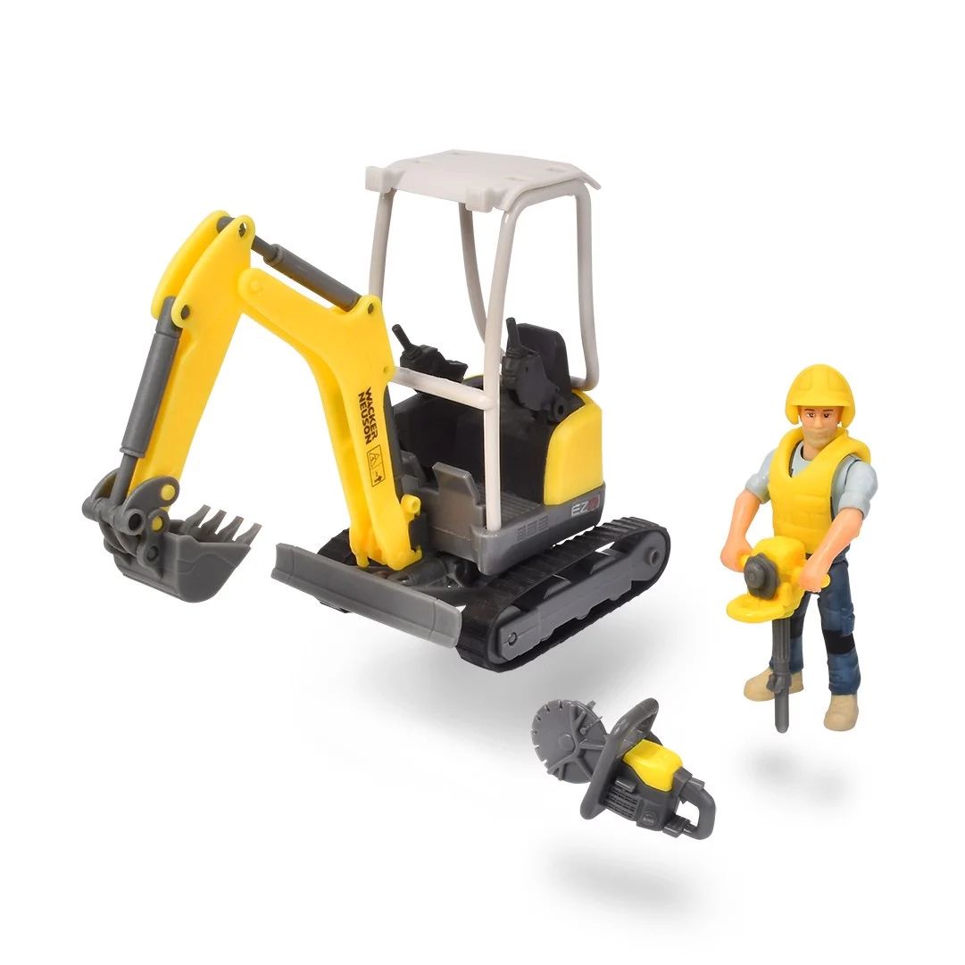 Bộ Đồ Chơi Xe Xây Dựng DICKIE TOYS Playlife-Excavator Set bao gồm 1 mô hình nhân vật có khớp nối, 1 xe cẩu máy xúc Wacker Neuson EZ17 được chế tạo rất chi tiết và tất cả các loại phụ kiện khác. Mô hình nhân vật được trang bị thêm mũ bảo hiểm, áo bảo hộ và các phụ kiện của một công nhân xây dựng: máy đào, máy cắt. Bộ Đồ Chơi Xe Xây Dựng DICKIE TOYS Playlife-Excavator Set có tỷ lệ 1:24 được thiết kế chi tiết và phù hợp với các bé từ 3 tuổi trở lên.