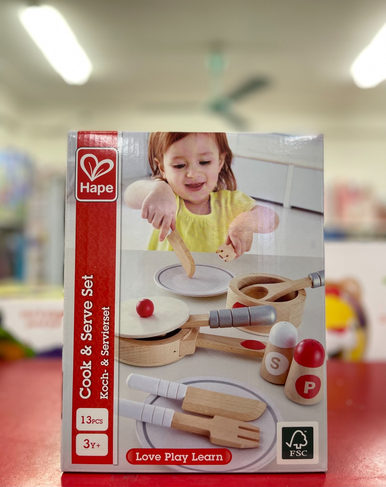 Bộ dụng cụ nấu bếp và bàn ăn HAPE được làm từ chất liệu cao cấp cho bé thoả sức sáng tạo câu chuyện của mình.