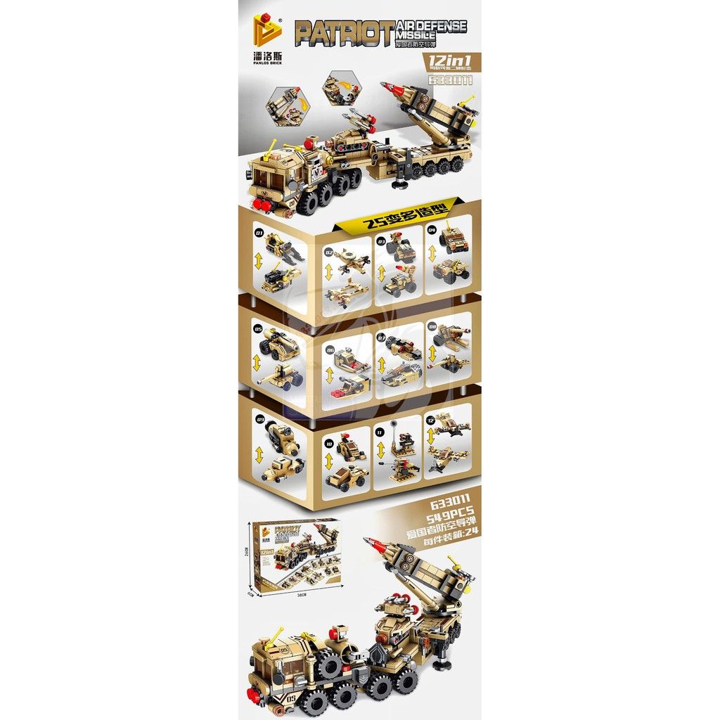 Sản phẩm gồm 12 hộp nhỏ, mỗi bộ ghép thành 1 loại phương tiện chiến đấu. Khi ghép 12 hộp lại có thể lắp ghép thành một xe phóng tên lửa lớn dành cho các bé!
