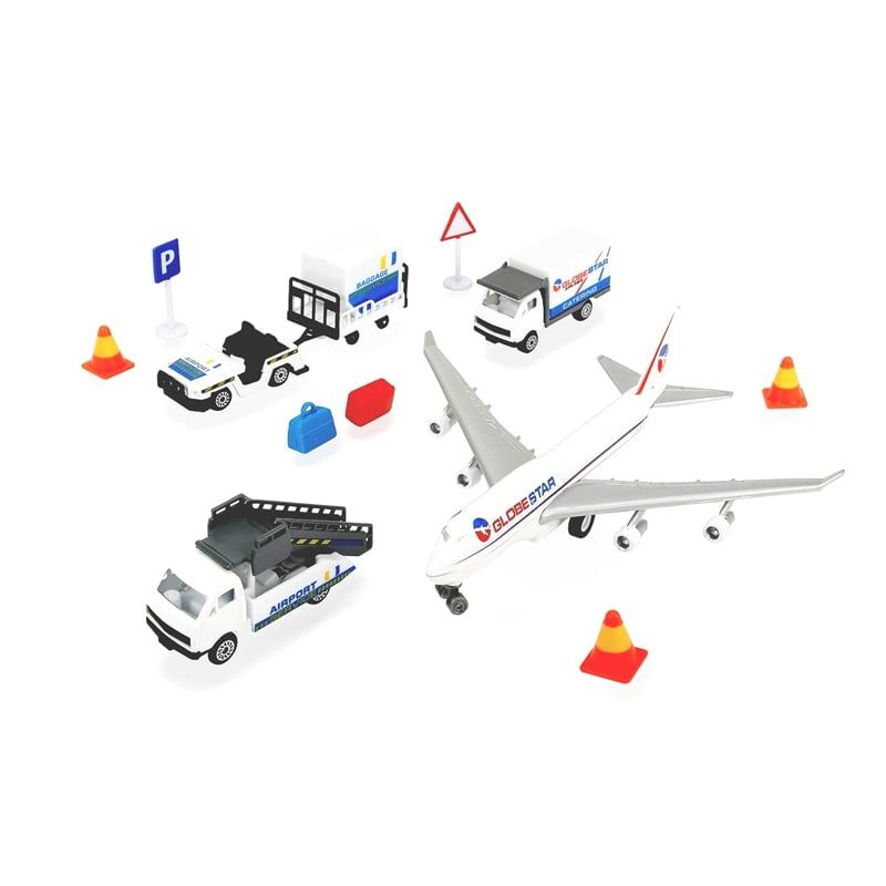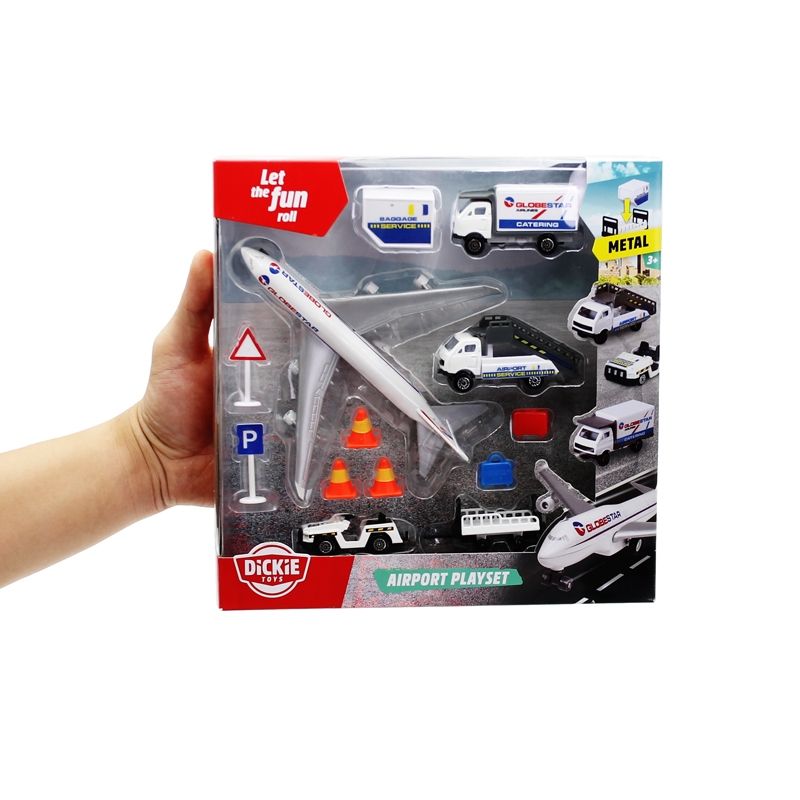 Bộ Xe Sân Bay DICKIE TOYS Airport Playset được làm bằng kim loại đúc cao cấp đảm bảo chất lượng đồ chơi cho trẻ em cao cấp nhất, bao gồm 3 xe cộng với nhiều loại phương tiện hỗ trợ mặt đất, biển báo và phụ kiện dịch vụ ở sân bay.