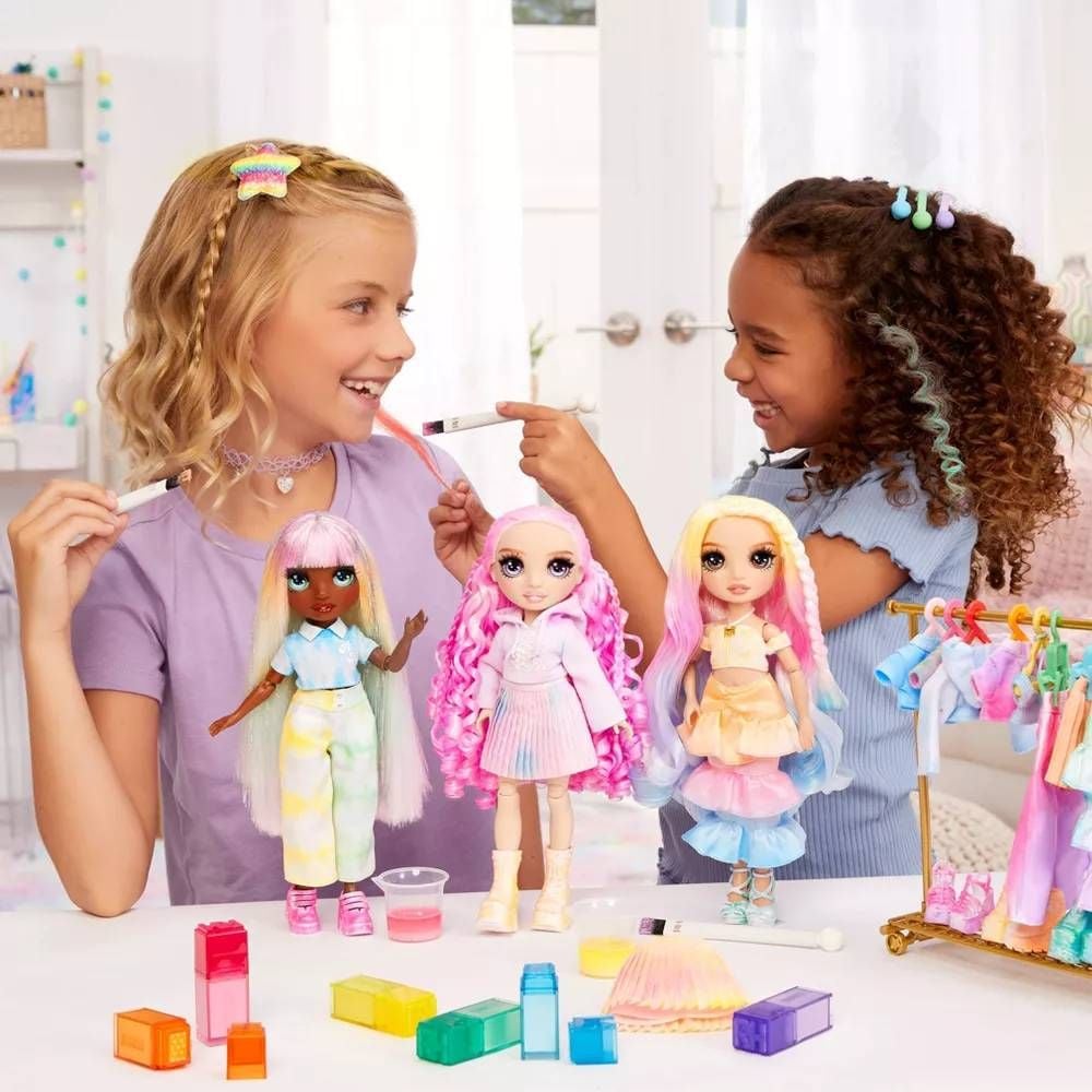 Không chỉ là búp bê thời trang, Rainbow High Watercolor & Create còn cho bé thỏa sức DIY sáng tạo trang phục và mái tóc với bộ màu nước rực rỡ. Mỗi lần chơi là một thiết kế hoàn toàn mới!