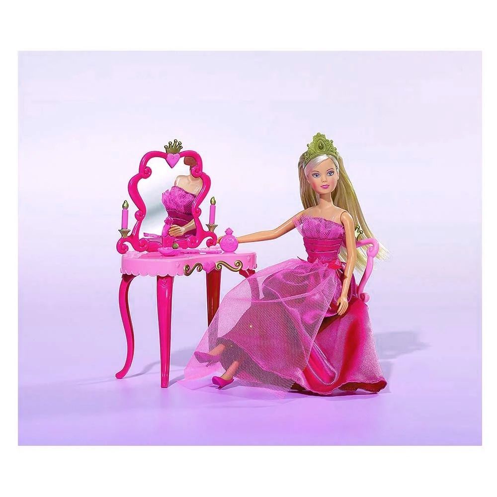 Búp Bê và Bàn Làm Đẹp Cổ Tích Steffi Love Fairytale Beauty Table sẽ cho phép bạn nghĩ ra và tái tạo nhiều cảnh đẹp từ cuộc đời của công chúa. Búp bê Steffi trông rất hấp dẫn. Ngoài chiếc váy màu hồng rực rỡ lộng lẫy, cô còn có một chiếc vương miện vàng tô điểm cho mái tóc óng ả. Trên chân cô là đôi giày màu hồng xinh xắn.