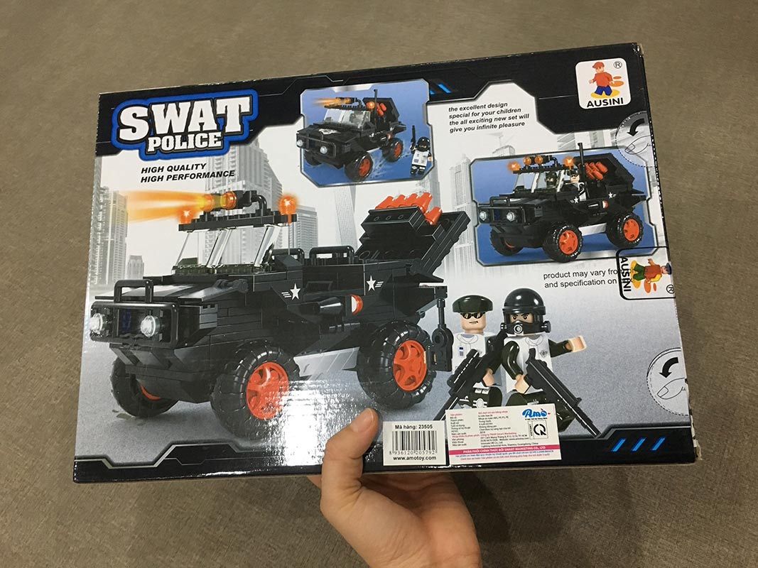 - Cảnh sát đặc nhiệm Ausini- 23504 là bộ xếp hình của Ausini luôn mang lại sức hấp dẫn với các bé. Sản phẩm sẽ mang lại cho bé những phút vui chơi thú vị khi được tự mình tưởng tượng và trải nghiệm các nhân vật, khơi gợi khả năng tư duy và sáng tạo ở từng bé. Các bé sẽ được đóng vai là các chú cảnh sát đặc nhiệm truy bắt tội phạm bằng các thiết bị tiên tiến như tàu cảnh sát, trực thăng, xe bọc thép và nhiều thiết bị khác.