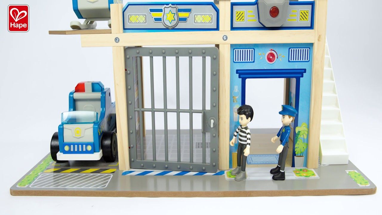 Kể câu chuyện của riêng trể về cảnh sát và bọn cướp với Đồ Chơi E3050 Sở Cảnh Sát Metro Police HAPE. Nhà ga hai tầng có phòng giam có cửa mở, văn phòng, trực thăng có bãi đáp riêng, xe cảnh sát có chỗ đậu, một cảnh sát, một tù nhân và vô số phụ kiện thiết bị cảnh sát - thậm chí là một chú chó cảnh sát! Đồ chơi kích thích khả năng sáng tạo và tưởng tượng của trẻ.
