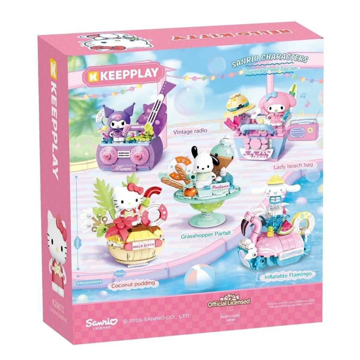 Mang đến bộ sưu tập xây dựng mini siêu dễ thương từ Sanrio! Phiên bản Hello Kitty Coconut Pudding thuộc series chủ đề pool party, mỗi nhân vật có một phong cách bể bơi riêng, tạo nên một bộ sưu tập cực kỳ đáng yêu khi trưng cùng nhau.