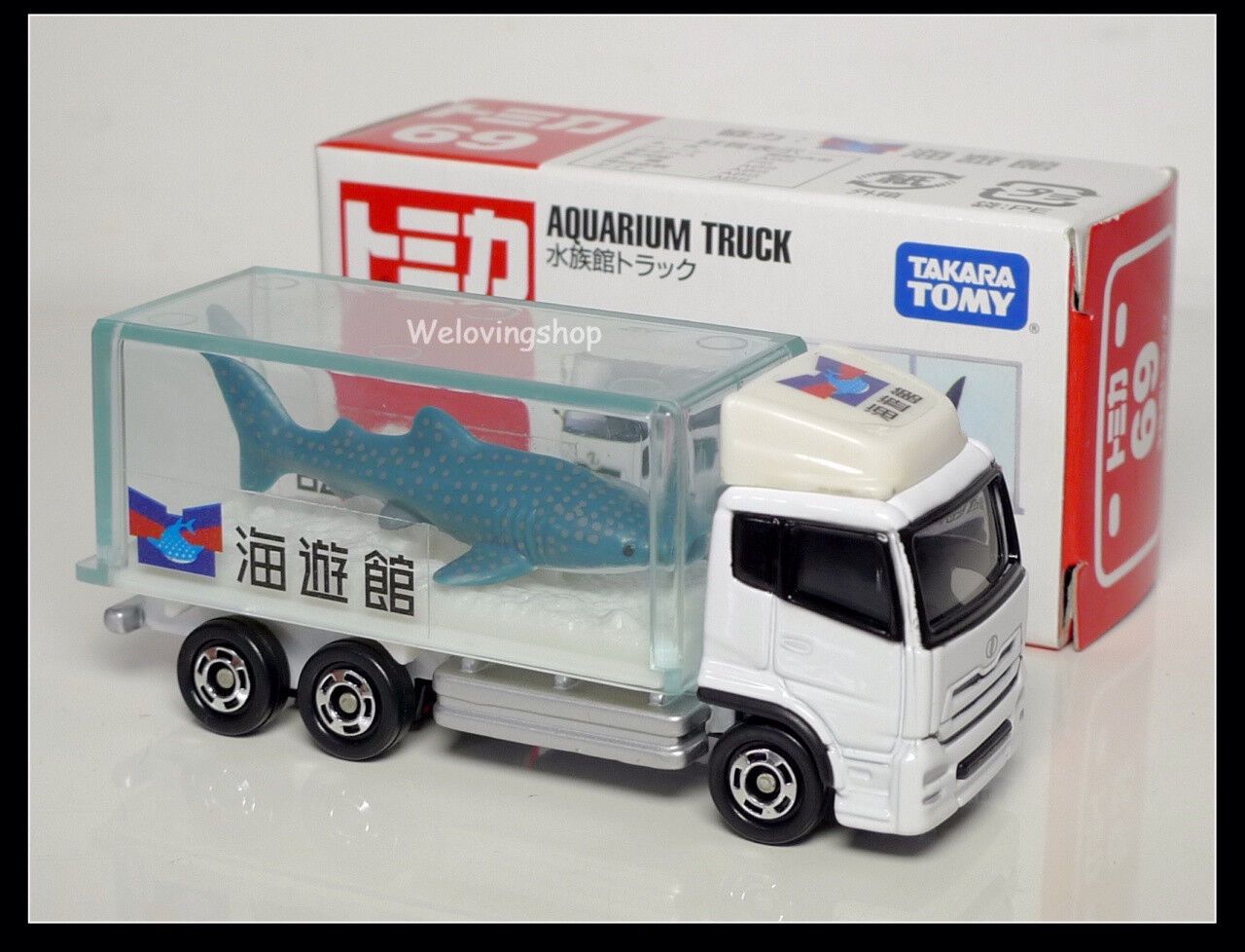 Đồ chơi Tomica 69 ô tô xe tải chở cá mập Aquarium Truck Shark là đồ chơi xe hợp kim Tomica được phát hành trong Tomica Premium. Sản phẩm không dùng pin, có thể sưu tầm hoặc chơi cùng hệ thống đường xá, nhà cửa Tomica World và đường sắt Plarail.