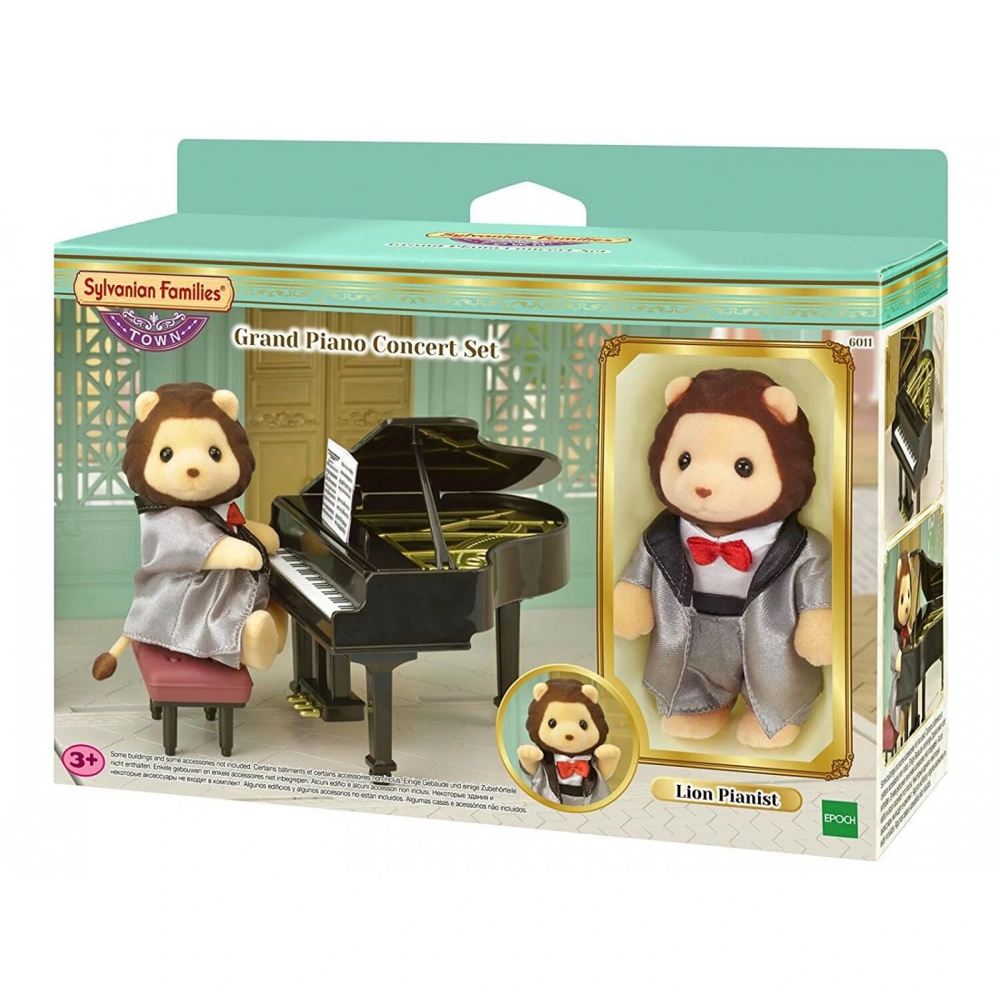 Một nhân vật và bộ phụ kiện: nghệ sĩ dương cầm Lionel the Lion, đàn piano cỡ lớn, ghế đẩu và bản nhạc.