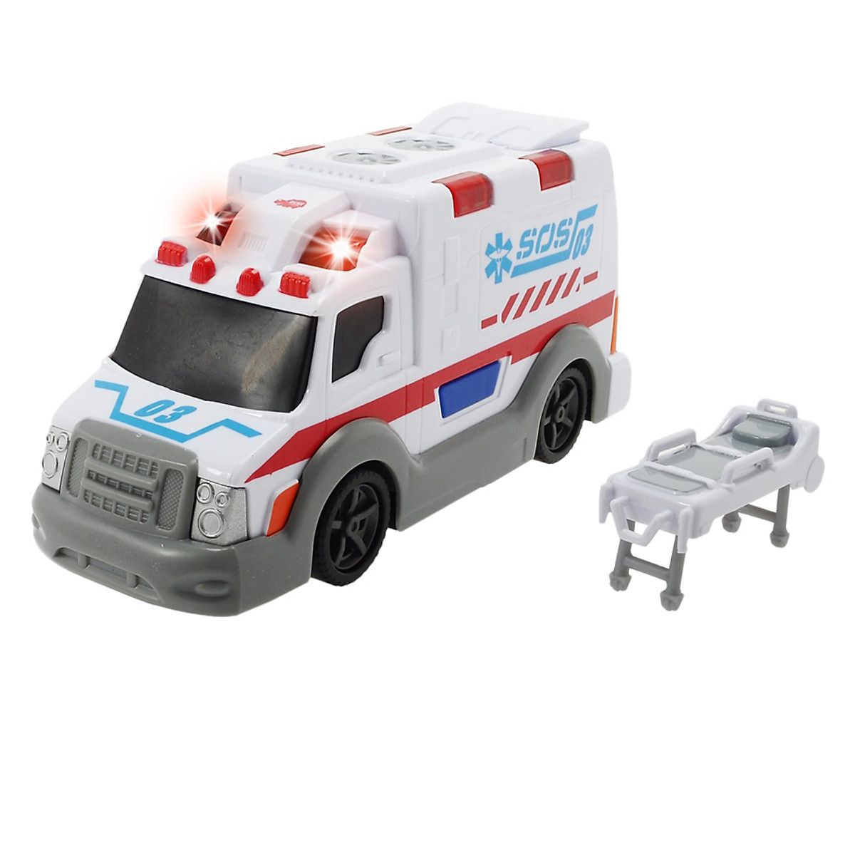 Những chiếc xe cứu thương Dickie Toys Ambulance được thiết kế mô phỏng như xe cứu thương kiểu Mỹ. Xe có đèn, âm thanh giúp các bé dễ tưởng tượng và có nhiều hiểu biết hơn. Các bé sẽ có cái nhìn sâu sắc và chi tiết hơn về công việc của những người cứu hộ. Với xe cứu thương Dickie Toys Ambulance, các bé không những được vui chơi và còn được biết thêm nhiều kiến thức bổ ích cho cuộc sống.