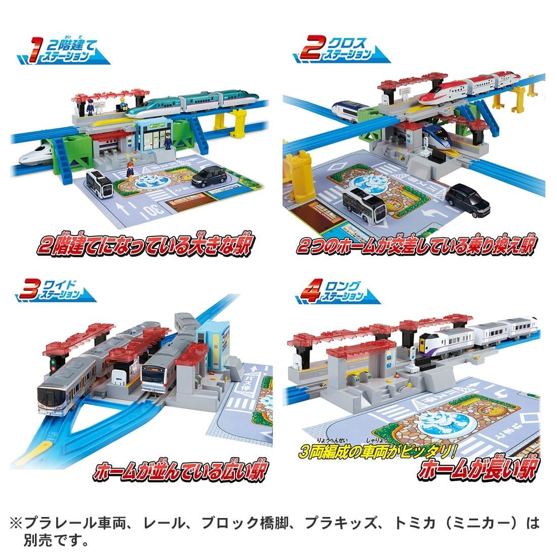 Ga có thể được sắp xếp lại thành bốn loại ga: (1) ga hai tầng, (2) ga chéo, (3) ga rộng và (4) ga dài. -Vị trí của đường ray được kết nối thay đổi khi hình dạng của nhà ga thay đổi. Thử thách các bố cục khác nhau, từ bố cục đơn giản đến khó.
