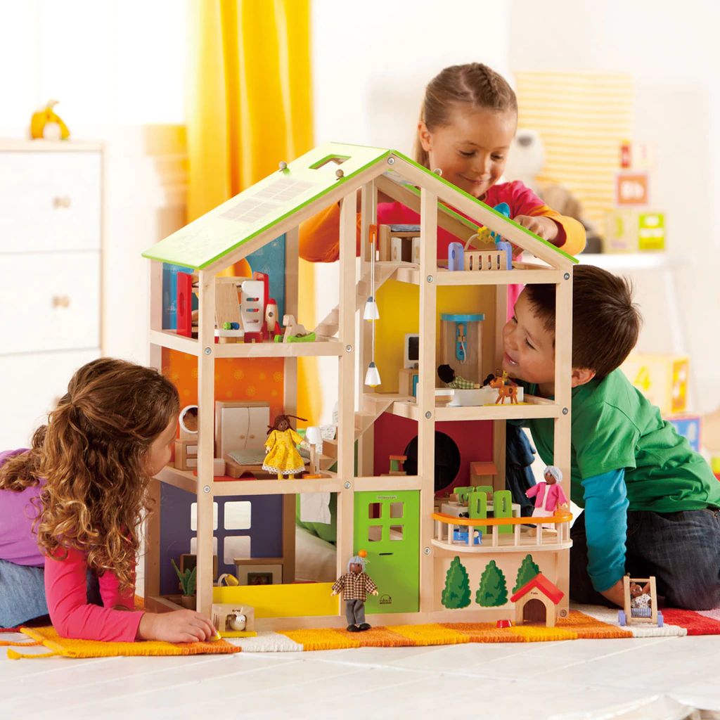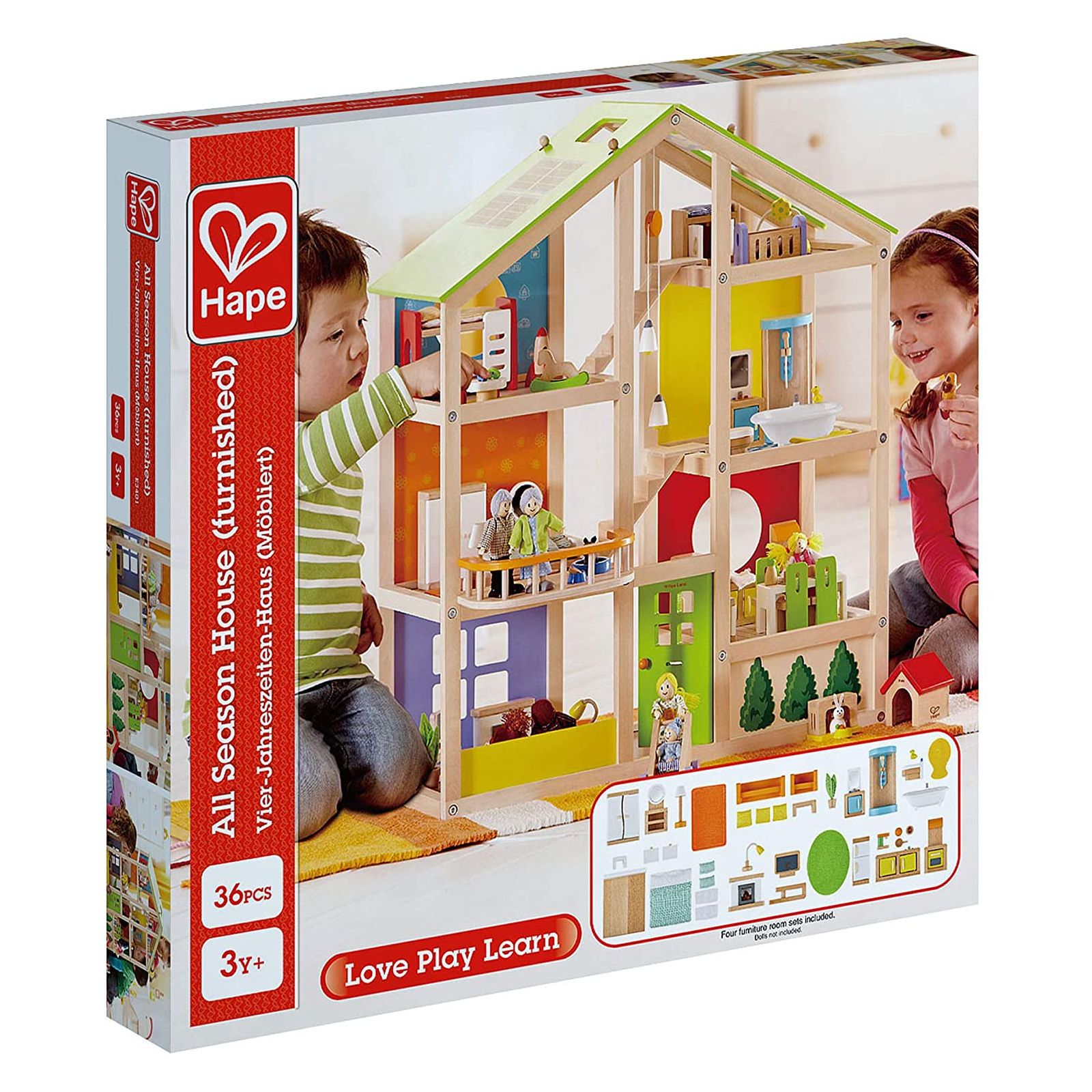Có rất nhiều cách để chơi với E3401 Ngôi Nhà Bốn Mùa HAPE (gồm nội thất). Sáu phòng, cầu thang có thể di chuyển và mái nhà bằng tấm năng lượng mặt trời theo chủ đề mùa đông / mùa hè có thể đảo ngược tạo cảm hứng cho các hoạt động quanh năm. Bao gồm bốn bộ phòng: Phòng ngủ chính, Phòng tắm gia đình, Phòng truyền thông và Nhà bếp.