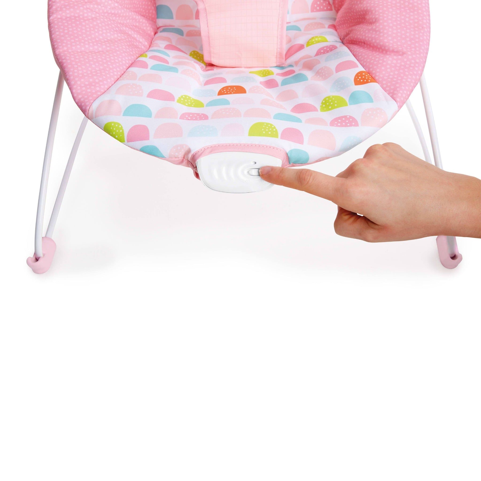 Một chiếc ghế rung tự động sẽ làm cho bé vô cùng thích thú. Hơn nữa với hình ảnh vườn thú xung quanh sẽ khiến cho bé có cảm giác thân thiện và vô cùng phấn khích, bé của bạn sẽ thích với lấy tiếng kêu lục lạc hình trái tim hoặc đồ chơi đuổi hạt hình bông hoa tươi sáng lạ mắt. Chiếc ghế đệm màu hồng mềm mại và sang trọng sẽ giữ cho bé an toàn và chắc chắn với dây đai 3 điểm và chân chống trượt