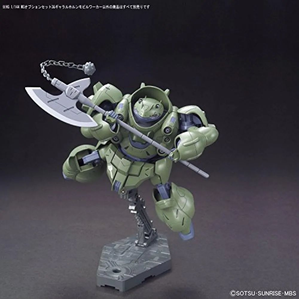 Gundam MS option set 3 được công bố gần đây trong series Iron-Blooded Orphan. Bộ Gundam Option Set 3 và Gjallorn Mobile worker HG bao gồm 3 vũ khí được thiết lập để phù hợp và tối ưu nhất đối với các Mobile Worker đó là rìu, xe chopper cho HG 1/144 Gundam Gusion, cây mác và Gjallarhorn Mobile Worker