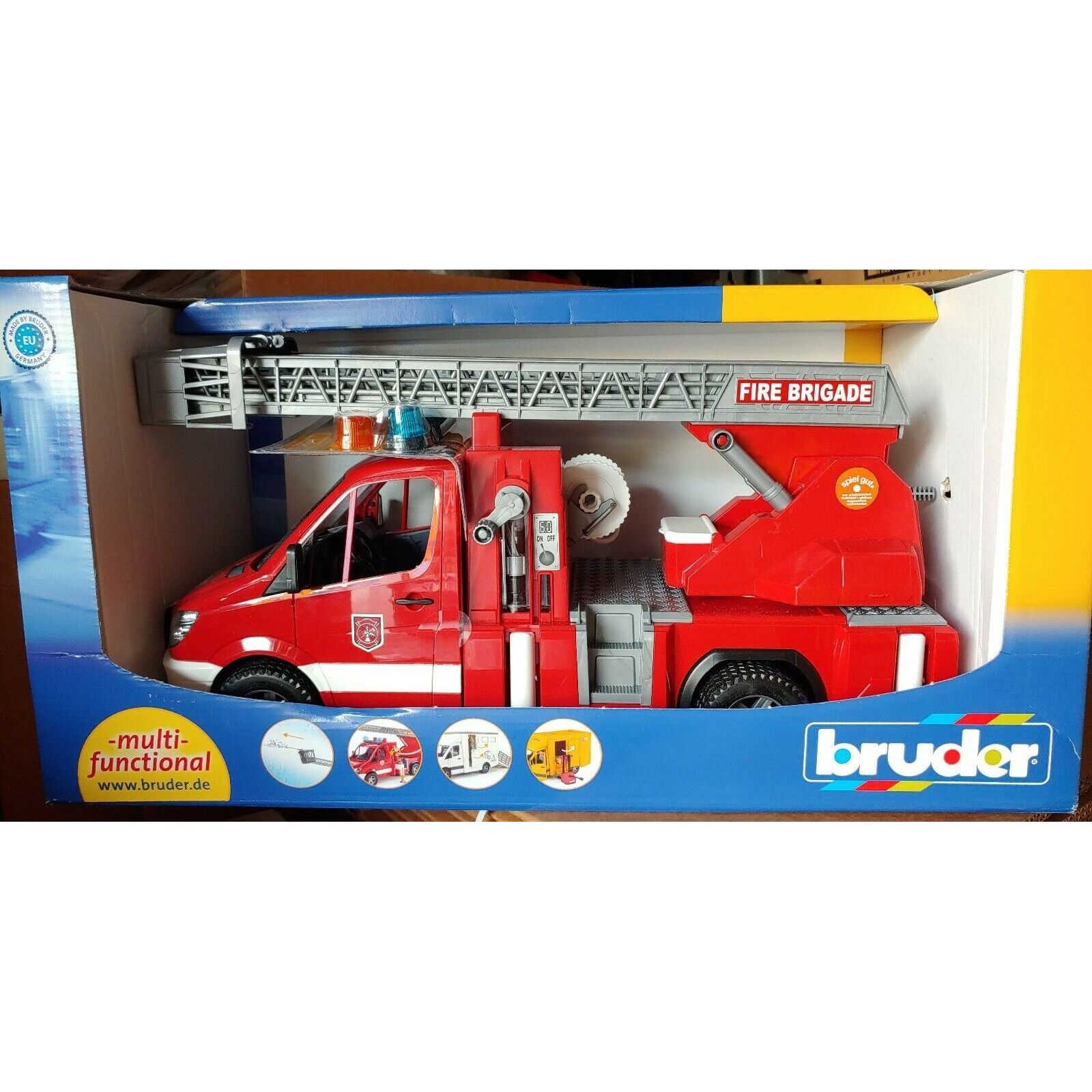 Mô hình Xe cứu hỏa có thang BRU02532 có hình ảnh đẹp, mô tả nguyên mẫu chiếc xe cứu hỏa Mercedes Benz Sprinter Fire Engine trong thực tế, chân thực và sắc xảo tới từng chi tiết cho trẻ tha hồ vui chơi và học tập, phát huy khả năng sáng tạo, đồng thời kích thích các giác quan phát triển.