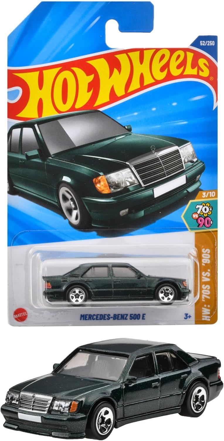 Chiếc Mercedes-Benz 500E – biểu tượng sedan hiệu năng cao của thập niên 90 – được Hot Wheels tái hiện qua mã JFN67 trong dòng Basic Car Series với tỉ lệ 1:64, cực kỳ sắc nét và đáng sưu tầm!