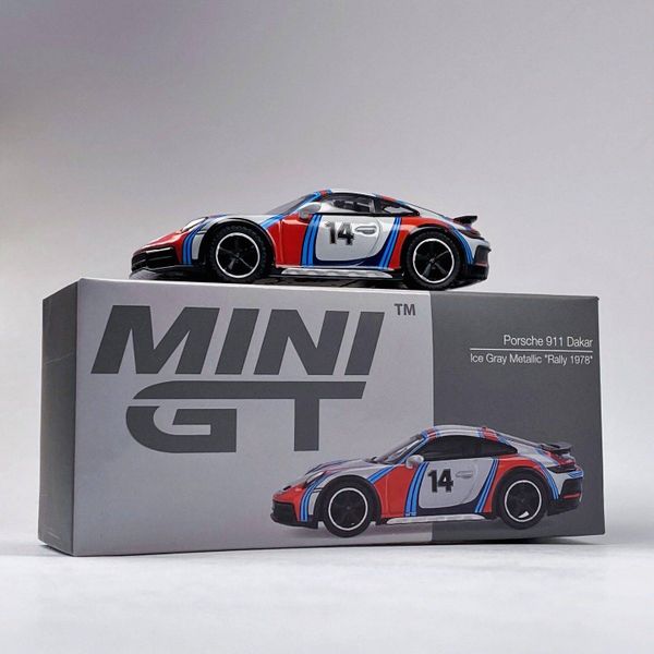 Mini GT Box Version MGT00964 Porsche 911 Dakar Ice Grey Metallic "Rally 1978"