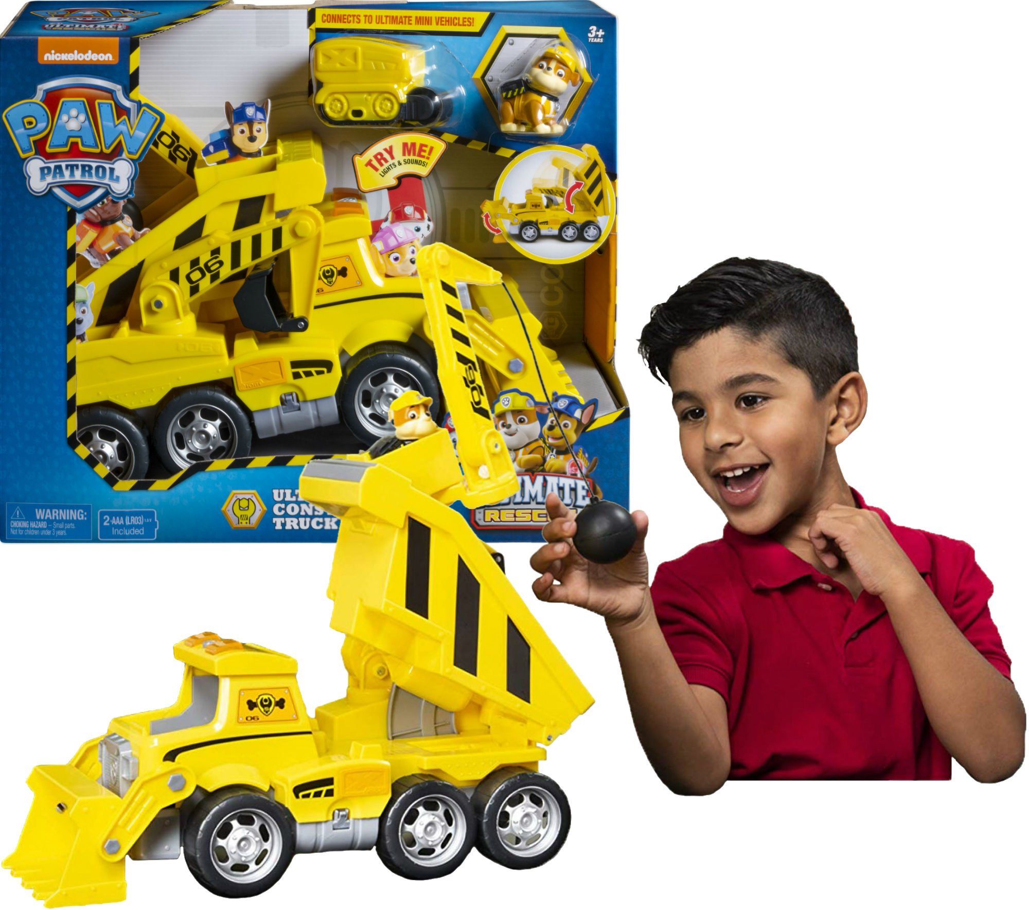 Mô hình xe tải Chó cứu hộ PAW Patrol Ultimate Construction Truck đèn nhấp nháy và âm thanh. Chiếc xe cứu hộ ngoại cỡ này còn có các tính năng di chuyển thực tế để hoàn thành bất kỳ nhiệm vụ cứu hộ nào. Hãy bắt tay và giúp Rubble (bao gồm) ngày thôi bé ơi.