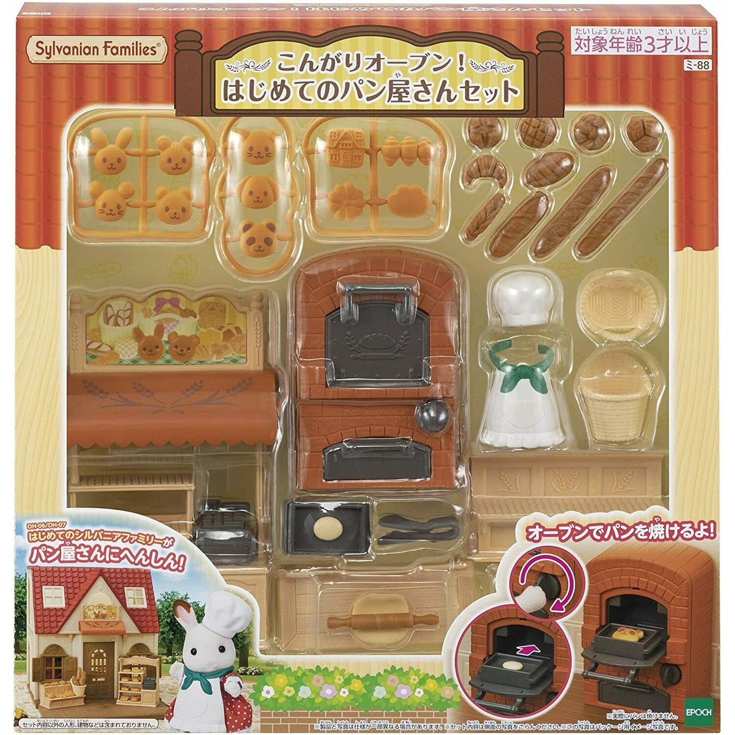 Tiệm Bánh Bakery Shop Starter Sylvanian Families 5536 đi kèm với rất nhiều đồ chơi nướng bánh để làm các món bánh thú vị và đa dạng. Đặt bánh mì lên khay lò, xoay nút xoay và nướng bánh mì. Kết hợp với Red Roof Cozy Cottage (bán riêng) để biến ngôi nhà thành tiệm bánh. Mặc tạp dề và mũ cho Cô gái thỏ sô cô la để biến ngôi nhà thành tiệm bánh. Bạn cũng có thể kết hợp bảng hiệu với Xe dã ngoại gia đình (bán rời) để biến chiếc xe van thành tiệm bánh mì di động.
