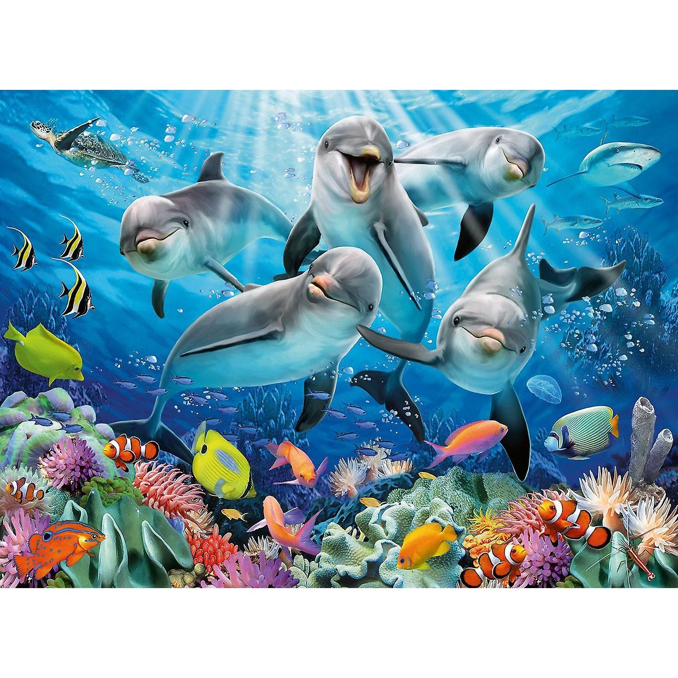 Các câu đố rất thú vị - một mình bạn, hoặc với gia đình và bạn bè Thư giãn khỏi cuộc sống bận rộn và xây dựng một hình ảnh đẹp và một kỷ niệm mới. Một bầy cá heo là tâm điểm chính của cảnh tượng thú vị dưới nước này. Nhóm 5 chú cá heo rất tò mò, chăm chú ra khỏi câu đố, quan tâm đến chúng tôi như chúng tôi ở trong chúng. Xung quanh chúng là những đàn cá nhiệt đới có màu sắc rực rỡ bơi lội, một số trú ẩn giữa tông màu sáng của một rạn san hô. Khám phá một thế giới kỳ thú dưới những con sóng!