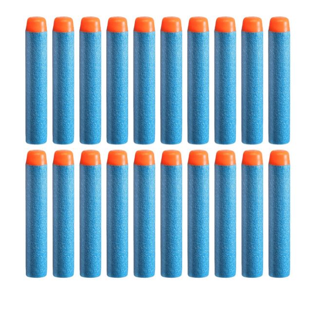 Đạn súng nerf được cấu tạo 2 phần, một phần xốp màu xanh, và đầu đạn màu đỏ. Đạn rất mềm nên rất an toàn, cho dù các bé nhỏ chơi bắn trúng nhau cũng không sao nhé