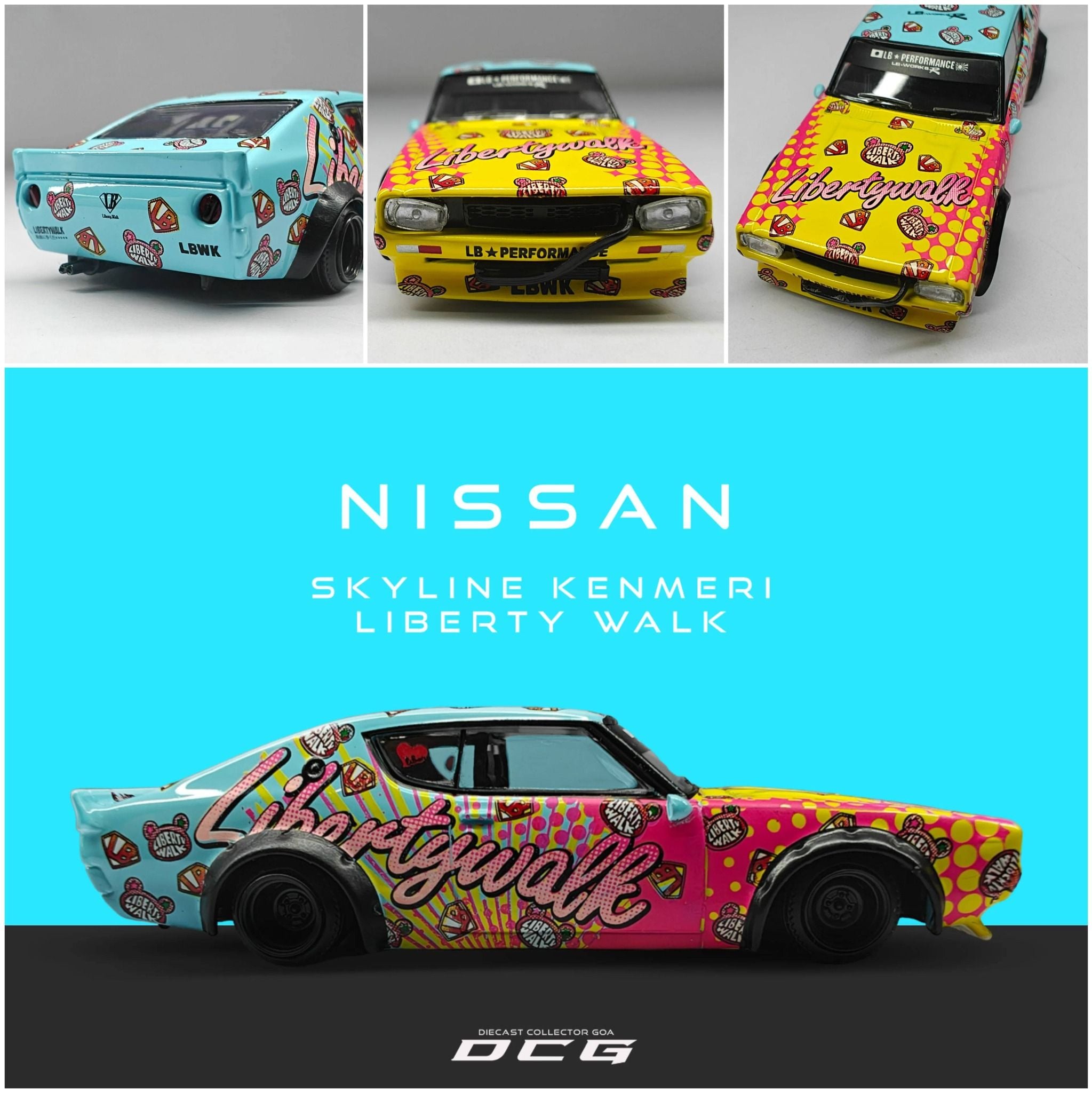 Bản phối màu Light Blue – Pink – Yellow gợi nhớ phong cách “bosozoku” nổi tiếng, đậm chất văn hóa đường phố Nhật những năm 80s, được Liberty Walk nâng tầm với bộ widebody và tem LBWK đặc trưng.