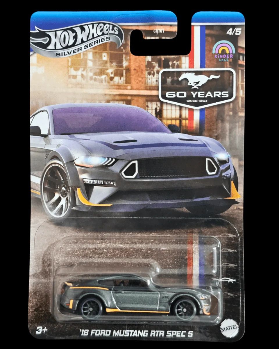 Hot Wheels '18 Ford Mustang RTR Spec 5 (Mã sản phẩm: JBY53/GRT01) là mô hình xe tỉ lệ 1:64, tái hiện chi tiết chiếc Ford Mustang RTR Spec 5 năm 2018. Sản phẩm này thuộc dòng Hot Wheels Celebrations, nổi bật với thiết kế bánh xe độc quyền và đồ họa nâng cấp, thu hút cả những nhà sưu tập chuyên nghiệp lẫn người yêu xe hơi