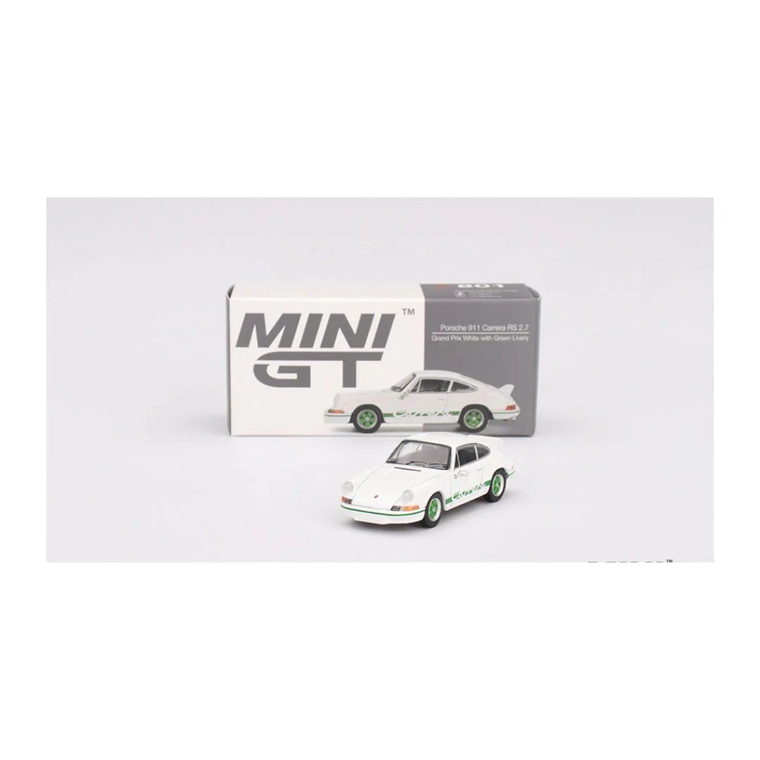 Xe mô hình MINI GT 1/64 Porsche 911 Carrera RS 2.7 Grand Prix White/Green Libery (Right Handle)