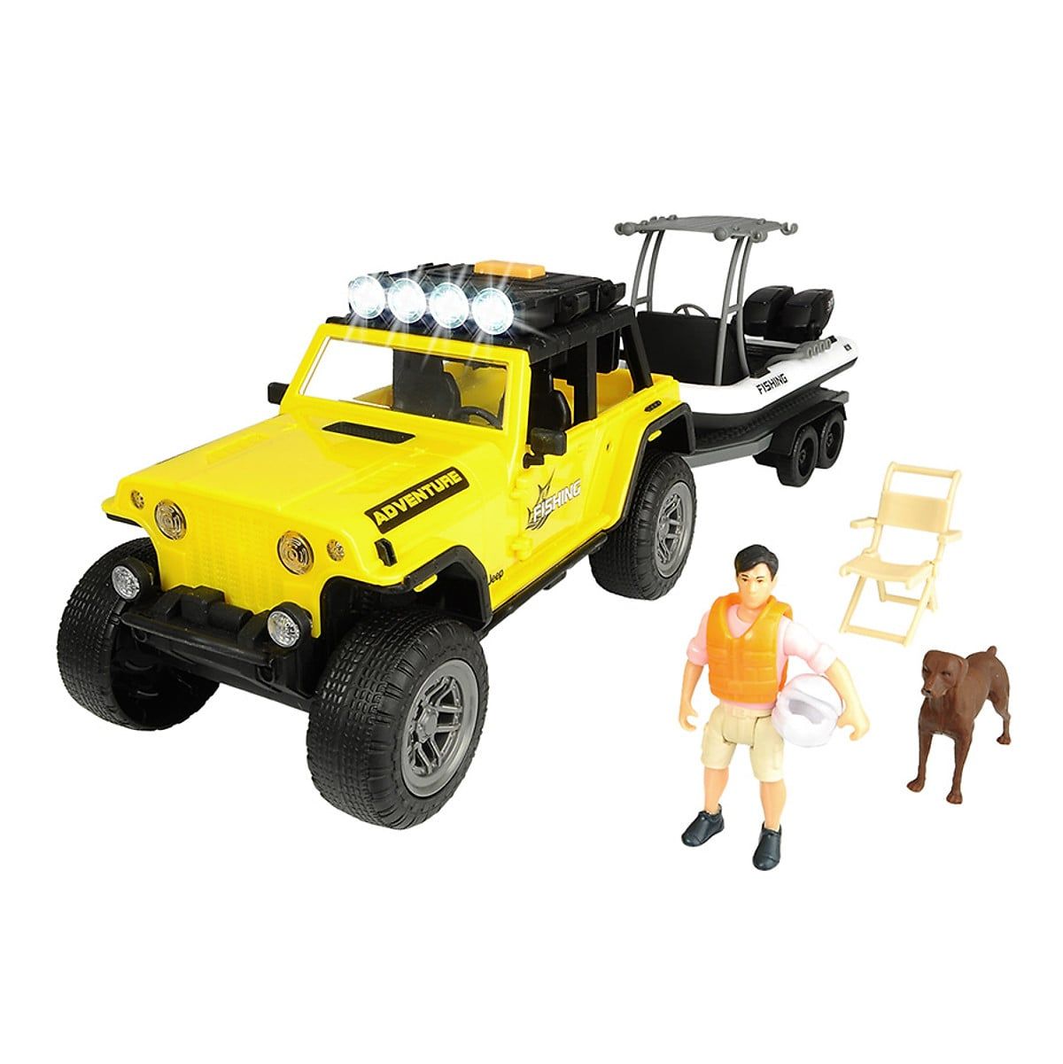 Playlife-Fishing Set được thiết kế với 18 phụ kiện mang đến niềm vui thực tế và lâu dài cho các bé. Các bé có thể hóa thân thành một người câu cá và bắt tất cả các cá - ngay cả trong vùng nước to nhất. Các bé có thể bắt đầu chuyến đi câu cá tiếp theo với một chiếc Jeepster Commando và trailer. Modun ánh sáng và âm thanh trên mái xe Jeep cung cấp một phong nền tuyệt hảo và được thiết kế trên nóc xe. Đặc biệt xe Jeep và xe kéo có thể tháo rời và di chuyển độc lập, nhân vật hành động có thể dễ dàng ngồi sau tay lái nhờ cánh cửa có thể mở được của Jeepster. Các bé có thể tưởng tượng được cảnh ngoài hoàn hảo với thiết bị câu cá, áo phao, ghế cắm trại và một chú chó như một người bạn đồng hành trung thành.
