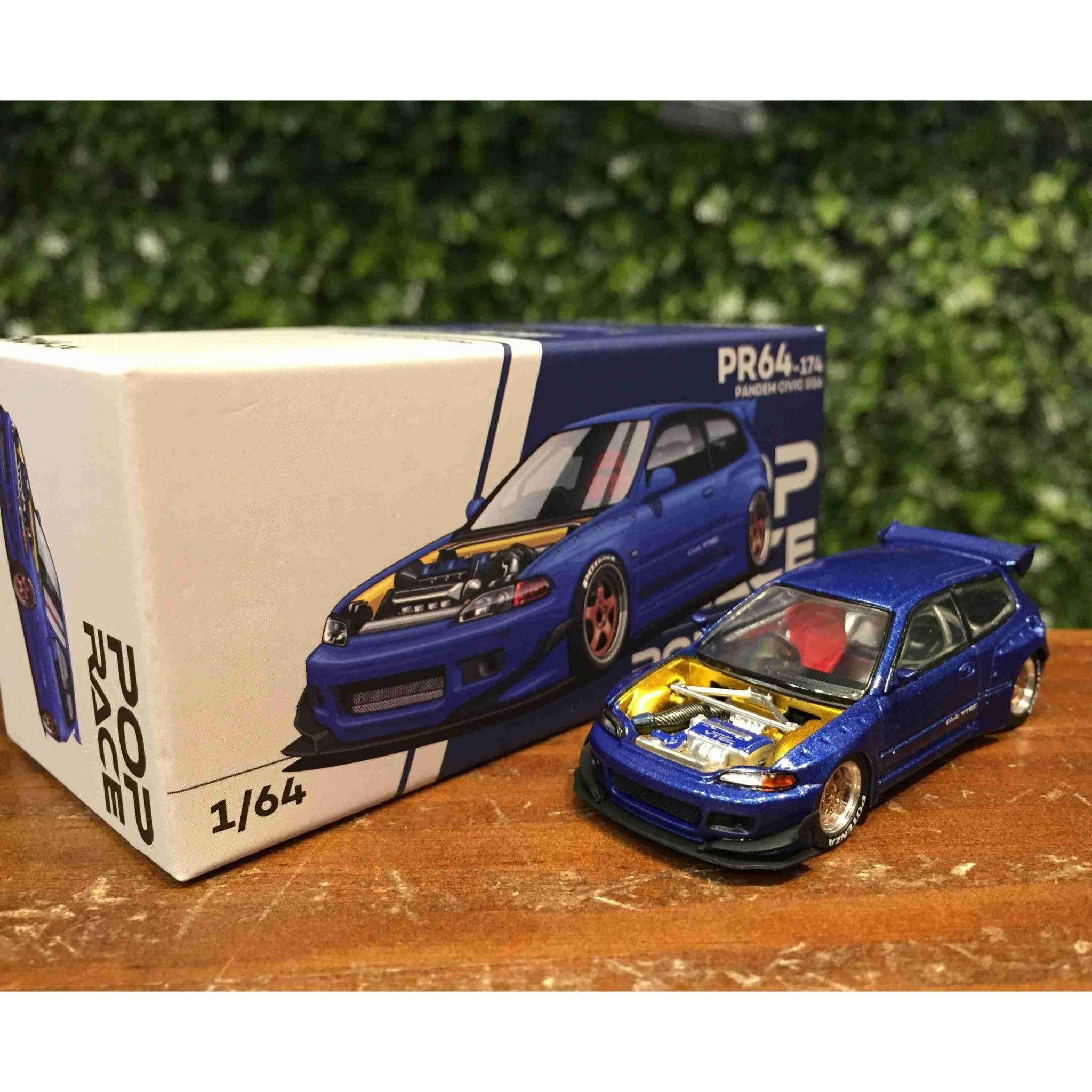 🔵 Pop Race 1:64 – Pandem Civic EG6 VTEC RHD Blue Metallic (No Hood)